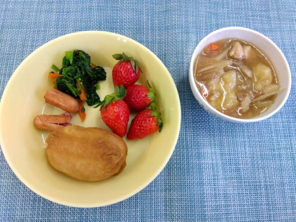 ウインナーソテー、いちご